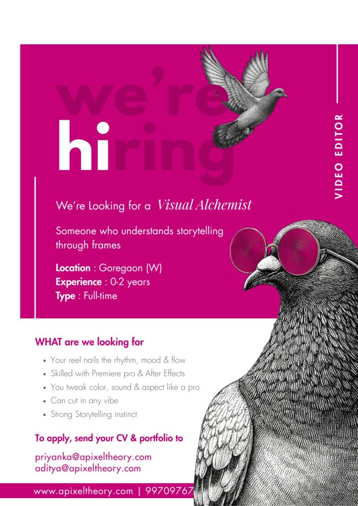 At A Pixel Theory, we don’t just create brands. We build stories, identities, and experiences that move people. We’re always looking for curious minds, sharp strategists, bold designers, and detail-obsessed creators who care deeply about their craft. If you believe ideas can change perception, culture, and business you’ll fit right in.